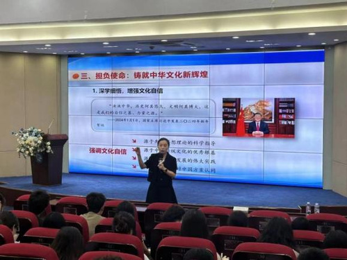 黄漫以“在守正创新中推进文化繁荣赓续—学习贯彻习近平文化思想”为题,深刻领会习近平文化思想的重大意义和精髓要义。她强调,深入学习贯彻习近平文化思想,必须牢牢把握习近平总书记提出的“七个着力”,坚定文化自信,在守正创新中推动文化繁荣发展。