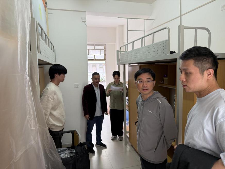 老师们十分关注学生的日常生活细节。他们走进一间间宿舍,仔细查看床铺是否整洁、物品是否摆放有序,提醒同学们注意春季流感预防,保持室内通风。老师们与大一新生亲切交流,询问他们是否适应大学节奏,鼓励他们多向高年级学长学姐请教,尽快融入新学期学习生活。